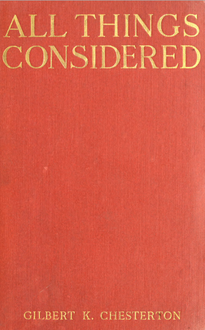 We do not have any of that nonsense in England because we have never attempted to have any of that philosophy in England. And, above all, because we have the enormous advantage of feeling it natural to be national, because there is nothing else to be. England in these days is not well governed; England is not well educated; England suffers from wealth and poverty that are not well distributed. But England is English—esto perpetua. England is English as France is French or Ireland is Irish; the great mass of men taking certain national traditions for granted. Now this gives us a totally different and a very much easier task. We have not got an inquisition, because we have not got a creed; but it is arguable that we do not need a creed, because we have got a character. In any of the old nations the national unity is preserved by the national type. Because we have a type we do not need to have a test.